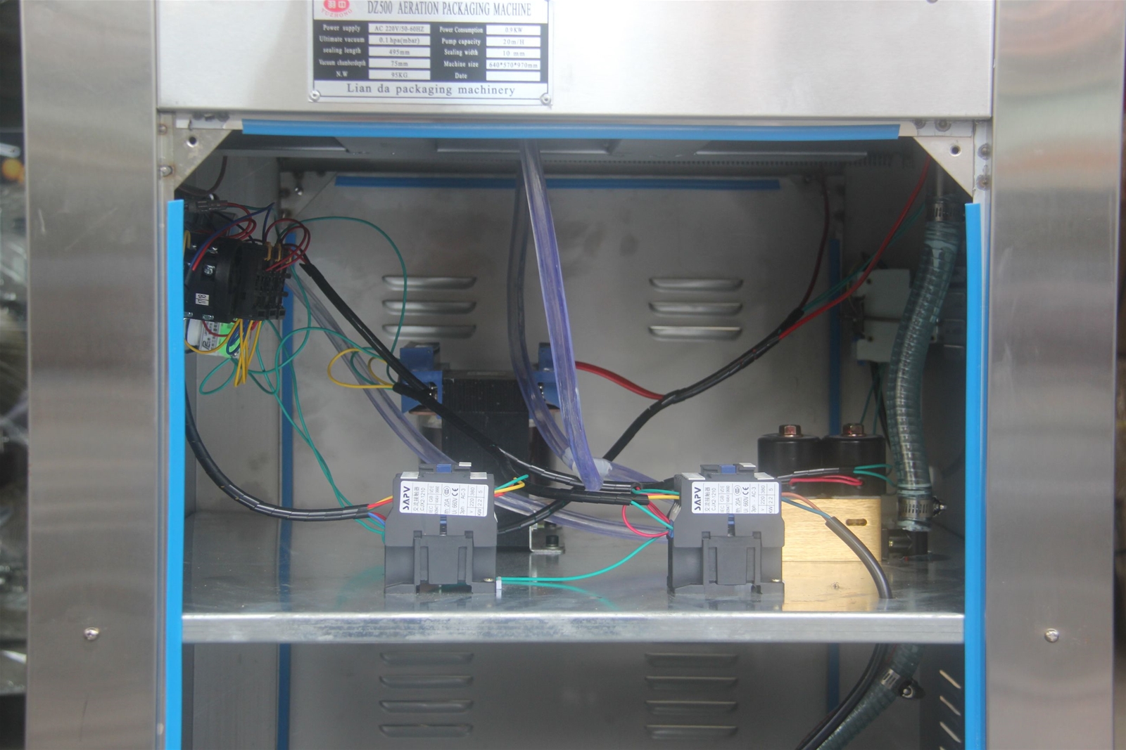 Máy hút chân không công nghiệp giá rẻ DZQ 500 làm việc theo thứ tự: hút chân không-hàn miệng-làm mát mối hàn. Máy có chức năng in date nổi trên mối hàn. Dễ dàng thao tác, nút điều chỉnh tự động, đồng hồ hiển thị các thông số: thời gian hút, nhiệt độ hút xả, công suất làm nóng. Nút tắt khẩn cấp nhanh chóng(trường hợp nếu các sản phẩm đặt vào buồng hút chưa được như nhu cầu, cần điều chỉnh, thay đổi). Buồng hút chân không cho được nhiều sản phẩm cùng một lúc.
