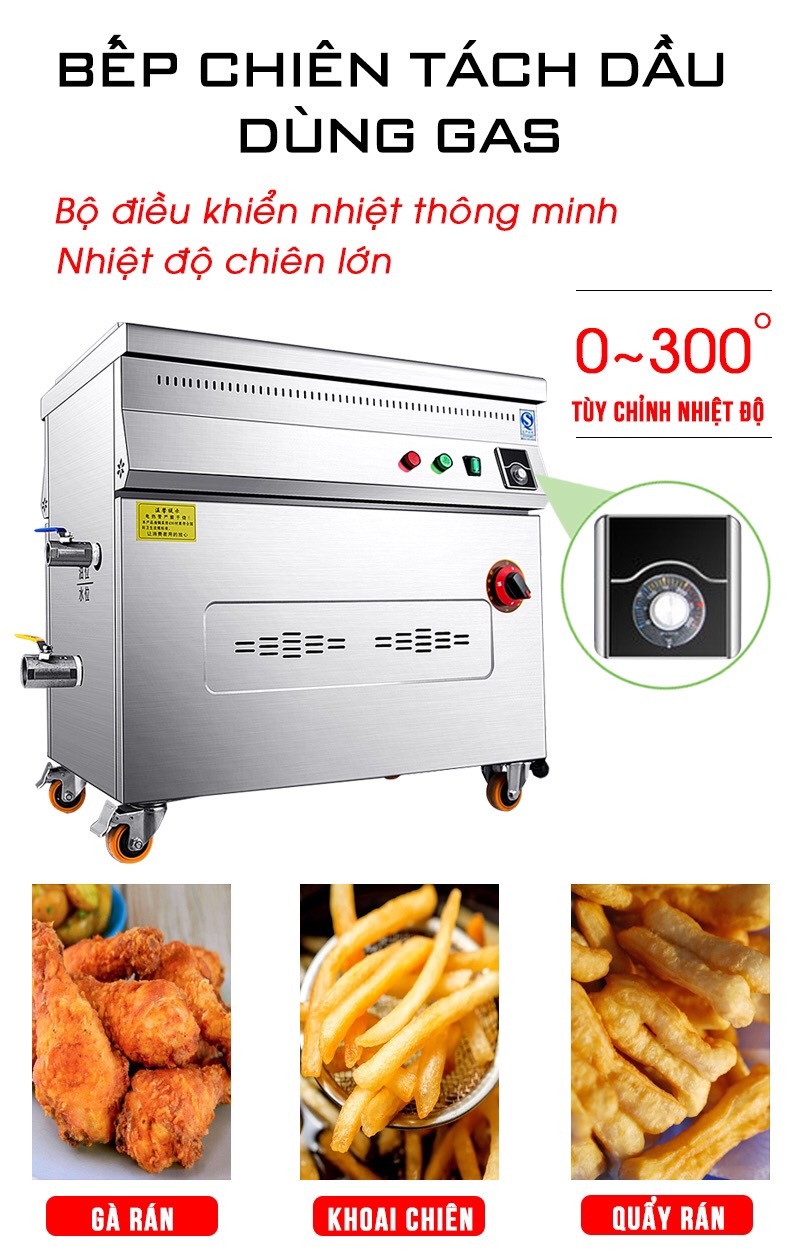 Thông số kỹ thuật và nguyên lý hoạt động của bếp chiên tách dầu 35L dùng gas