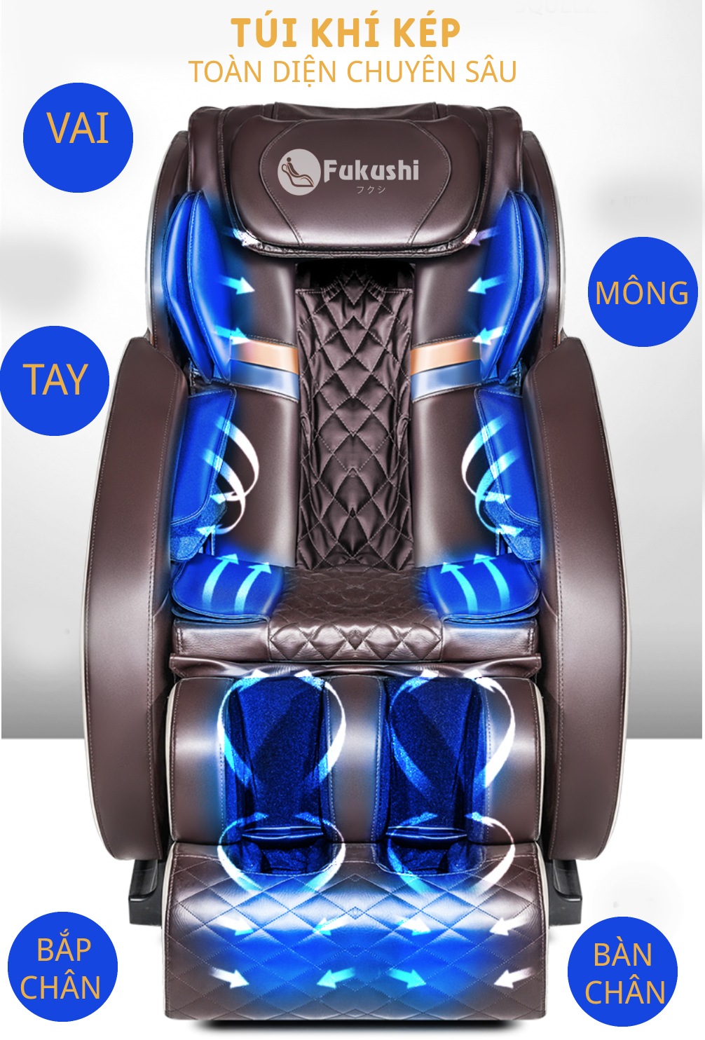 Ghế massage F668 được thiết kế với gần 60 túi khí trải đều khắp cơ thể: tay, vai, hông, bắp chân… Đặc biệt túi khí tay và chân được thiết kế dài hơn những dòng ghế massage thông thường. Giúp tối ưu trải nghiệm người dùng sản phẩm. Các túi khí ôm trọn cơ thể một cách hoàn hảo, bóp thả nhẹ nhàng. Kết hợp massage nhiệt hồng ngoại hỗ trợ tăng tuần hoàn máu. Đồng thời làm giảm tình trạng căng cơ, đau nhức xương khớp bắp co cứng, chuột rút,… Giúp người dùng nhanh chóng xua tan mệt mỏi.