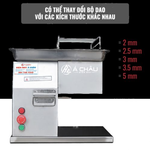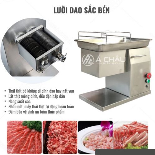 – Lưỡi dao được cấu tạo có các vết khía giúp cho máy bám thịt tốt hơn, nó tự động kéo thịt xuống máy để thái thịt.