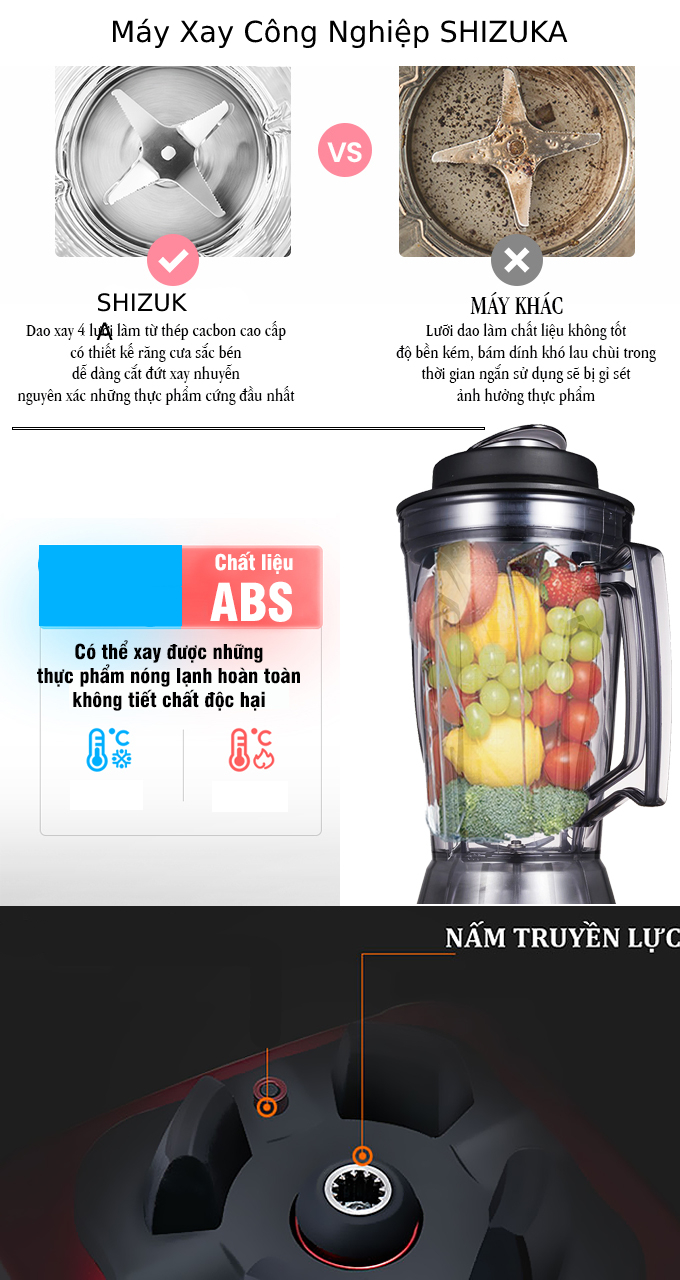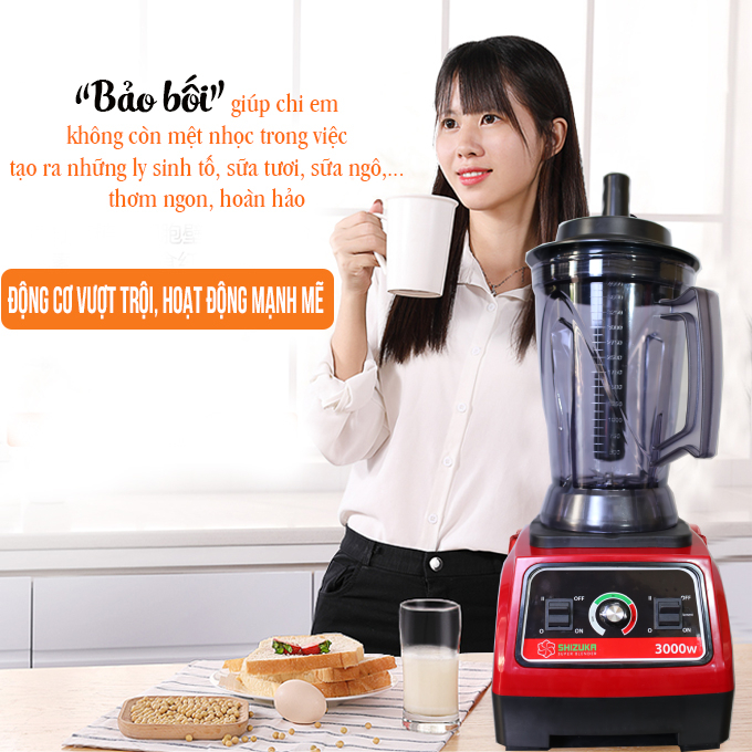 Máy xay sinh tố công nghiệp Shizuka SK-3000 có công suất hoạt động cực khủng 2500W với khả năng vận hạnh ổn định liên tục trong hàng giờ liền mà vẫn không làm giảm sút khả năng hoạt động linh hoạt và mạnh mẽ của máy