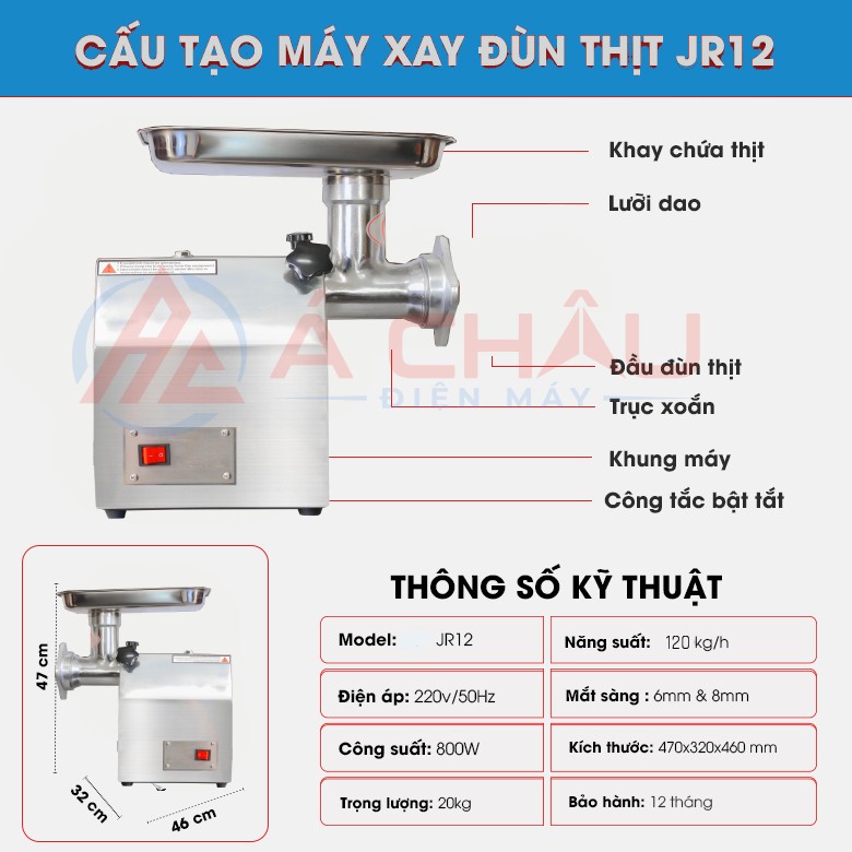 Máy xay thịt công nghiệp JR 12 với công suất mạnh mẽ