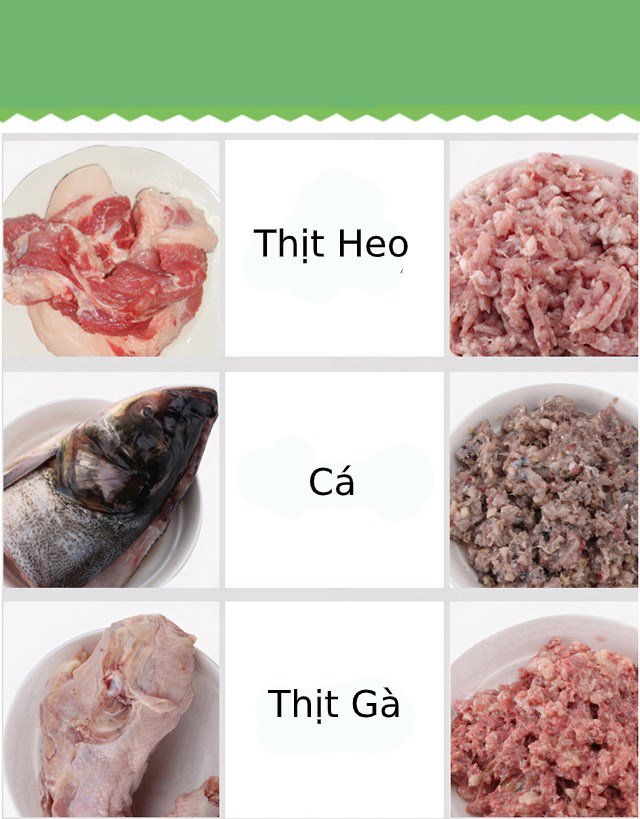– Có thể xay rất nhiều loại nguyên liệu khác nhau như thịt bò, thịt heo, cá, rau củ quả…